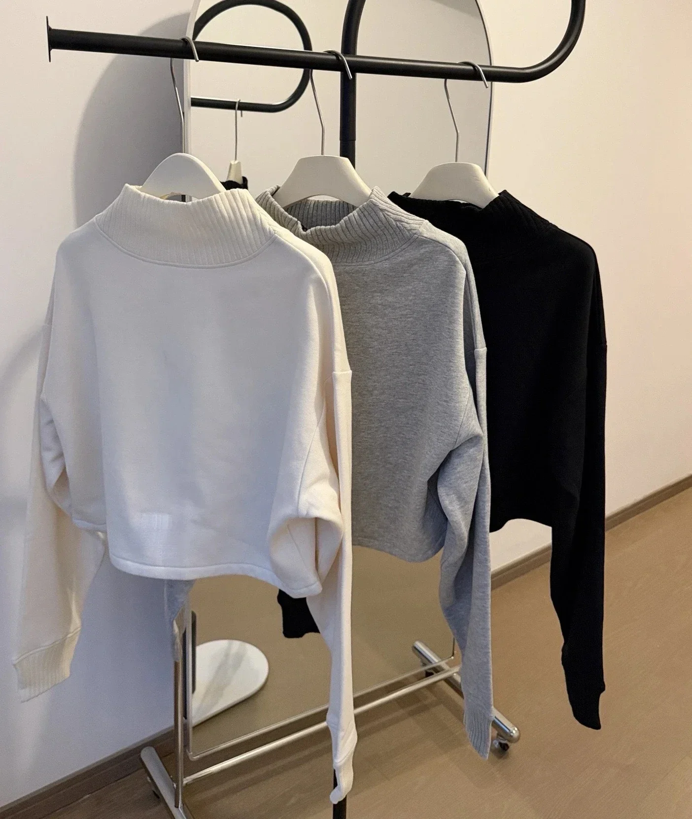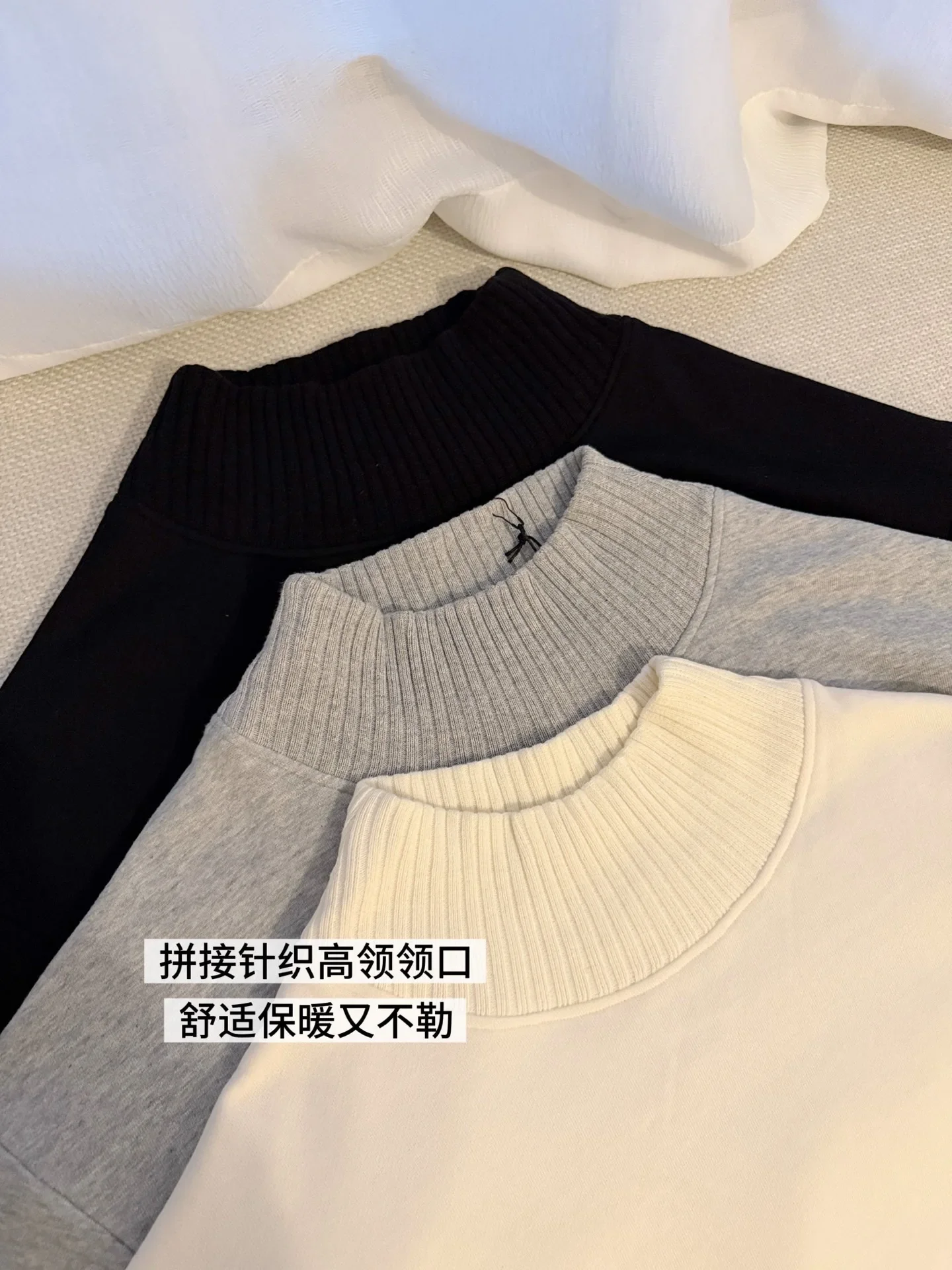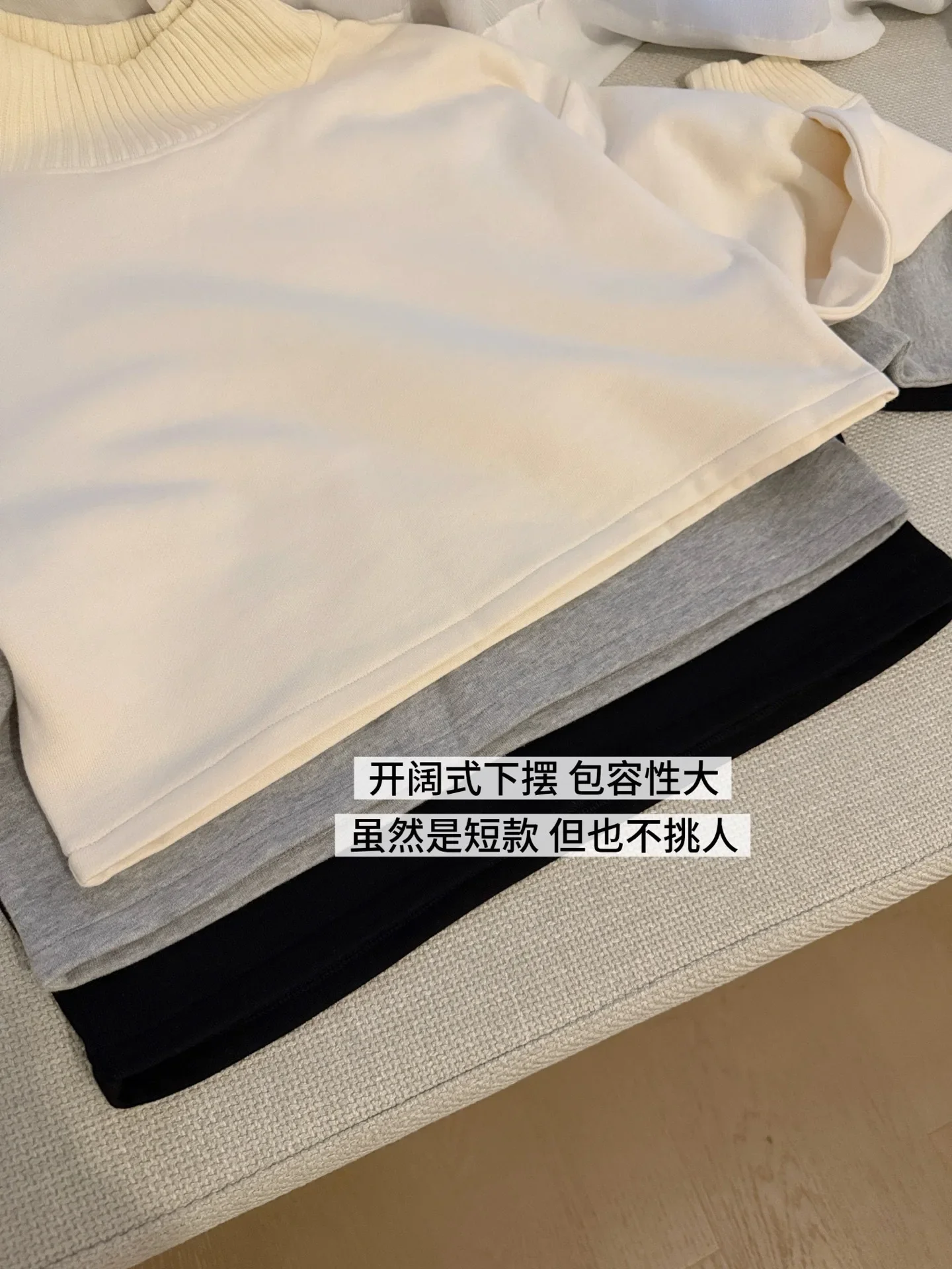 • product name: 2025 Winter Women Fleece Half Turtleneck Sweatshirt Warm Loose Cropped