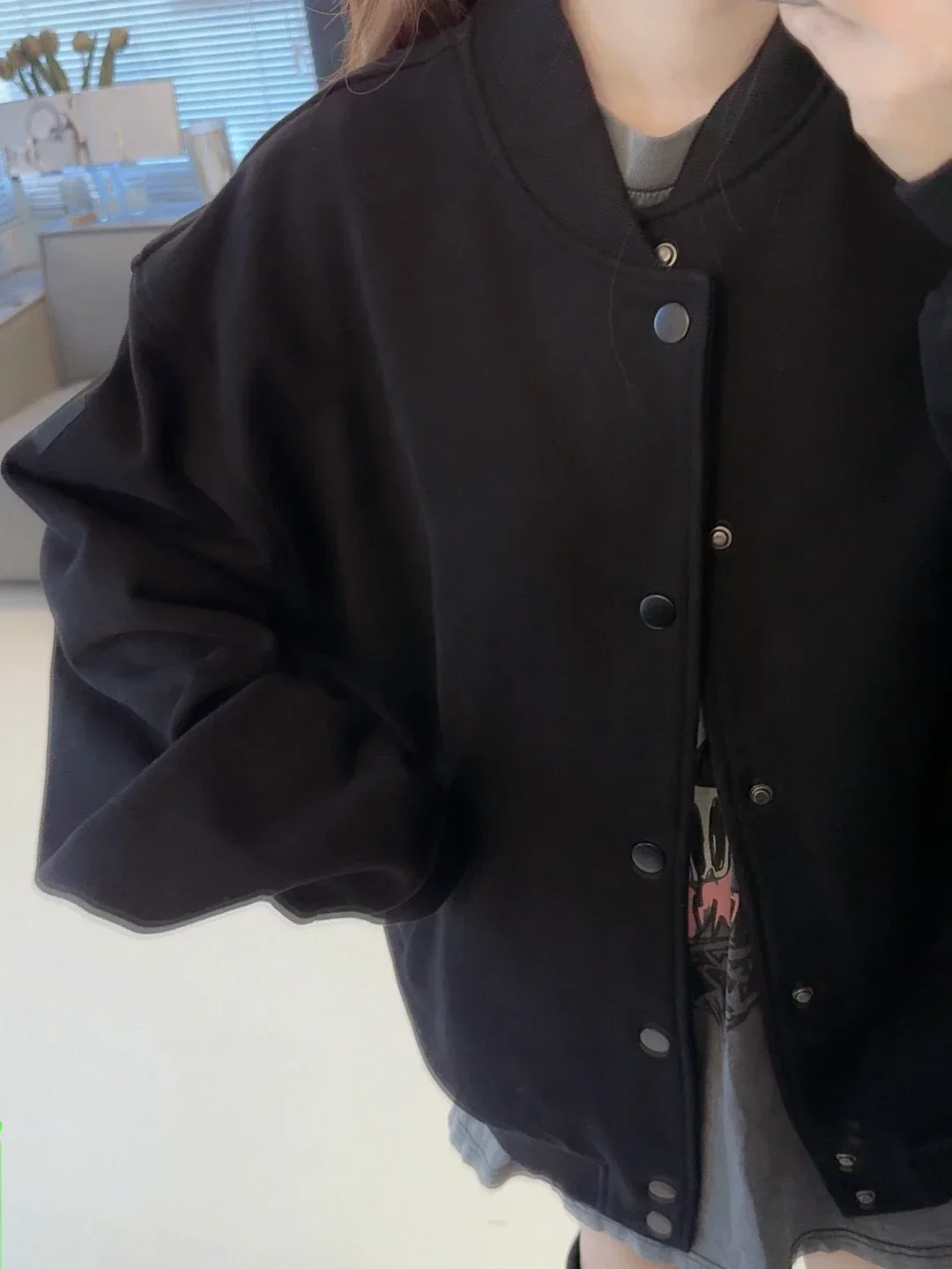 • product name: Women Casual Baseball Jacket Soft Long Sleeve Button Front Bomber Coat