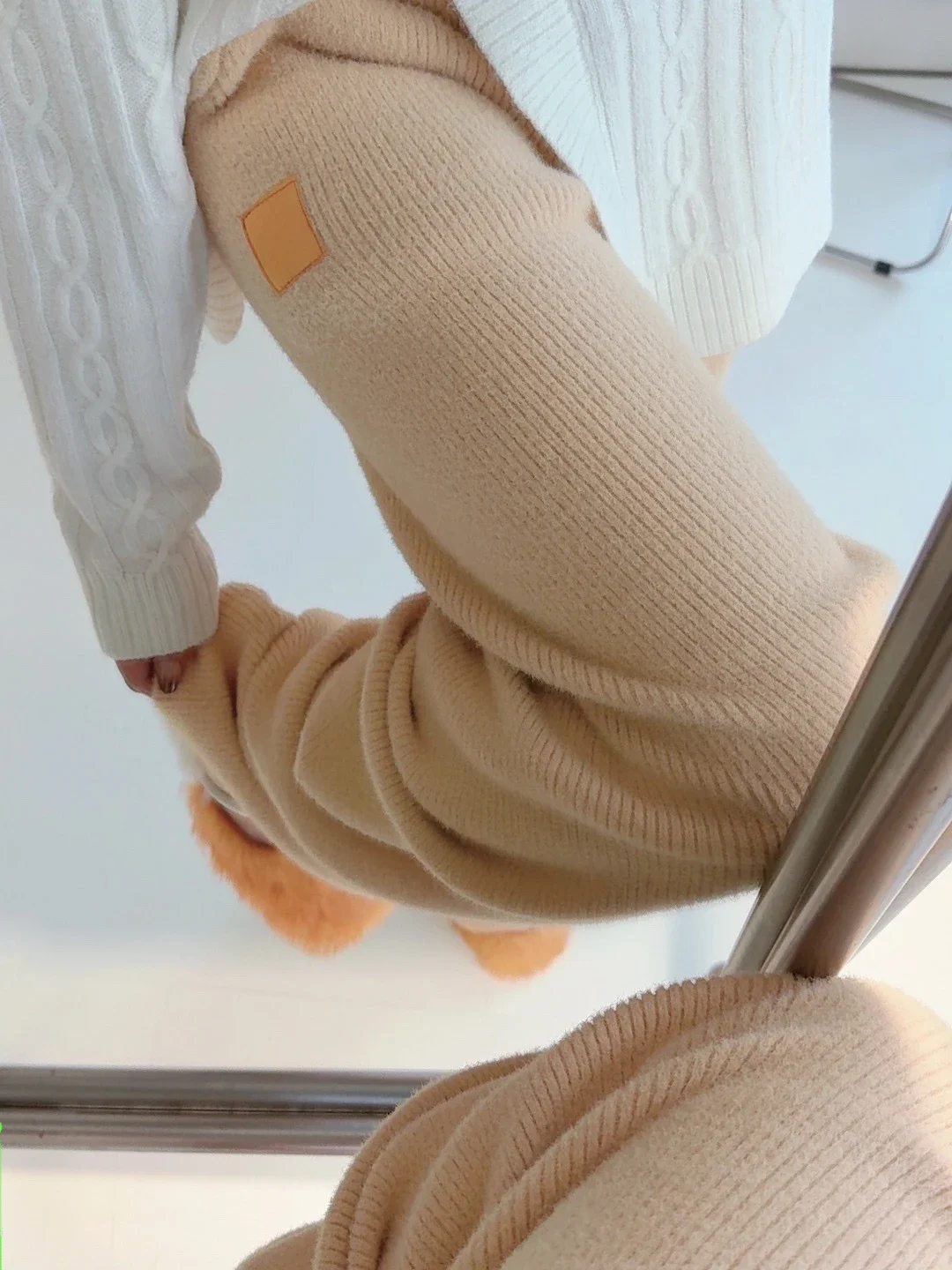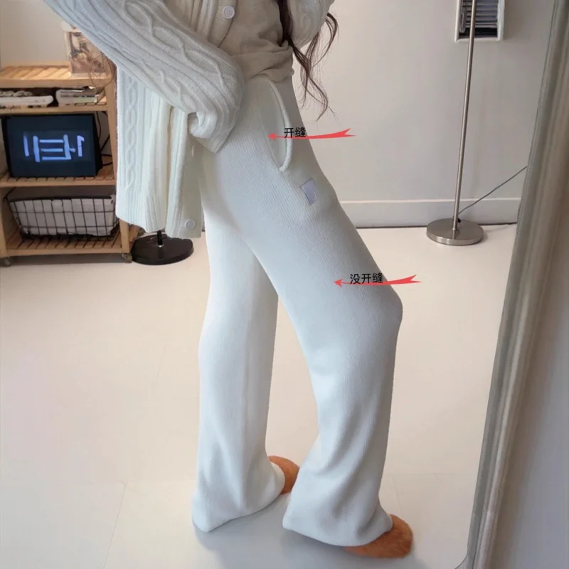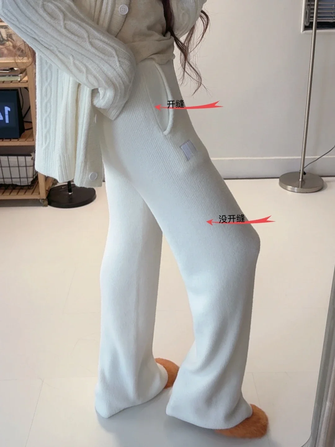 • product name: Women Knit Wide Leg Pants Casual Straight Trousers Soft Comfortable Hi