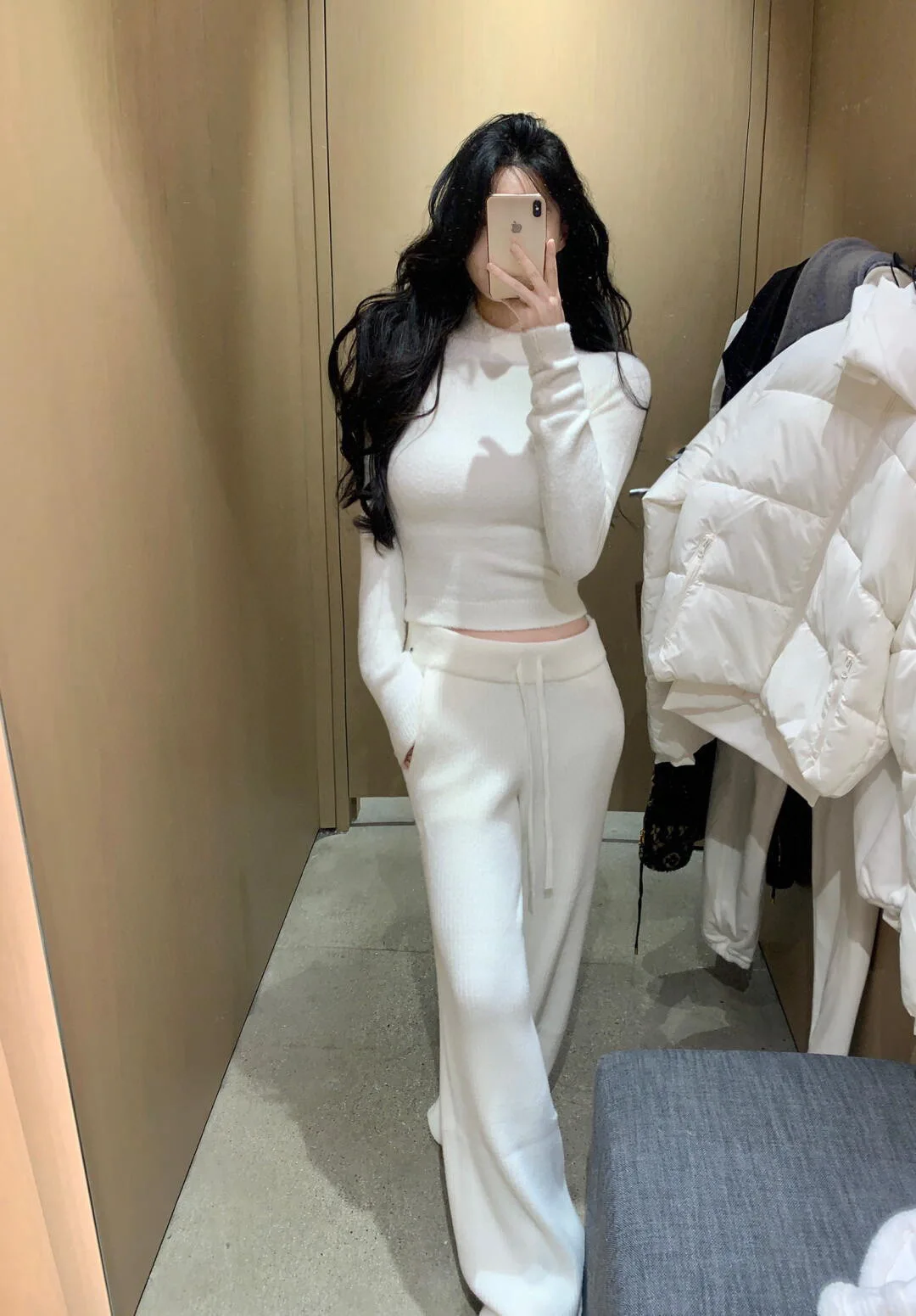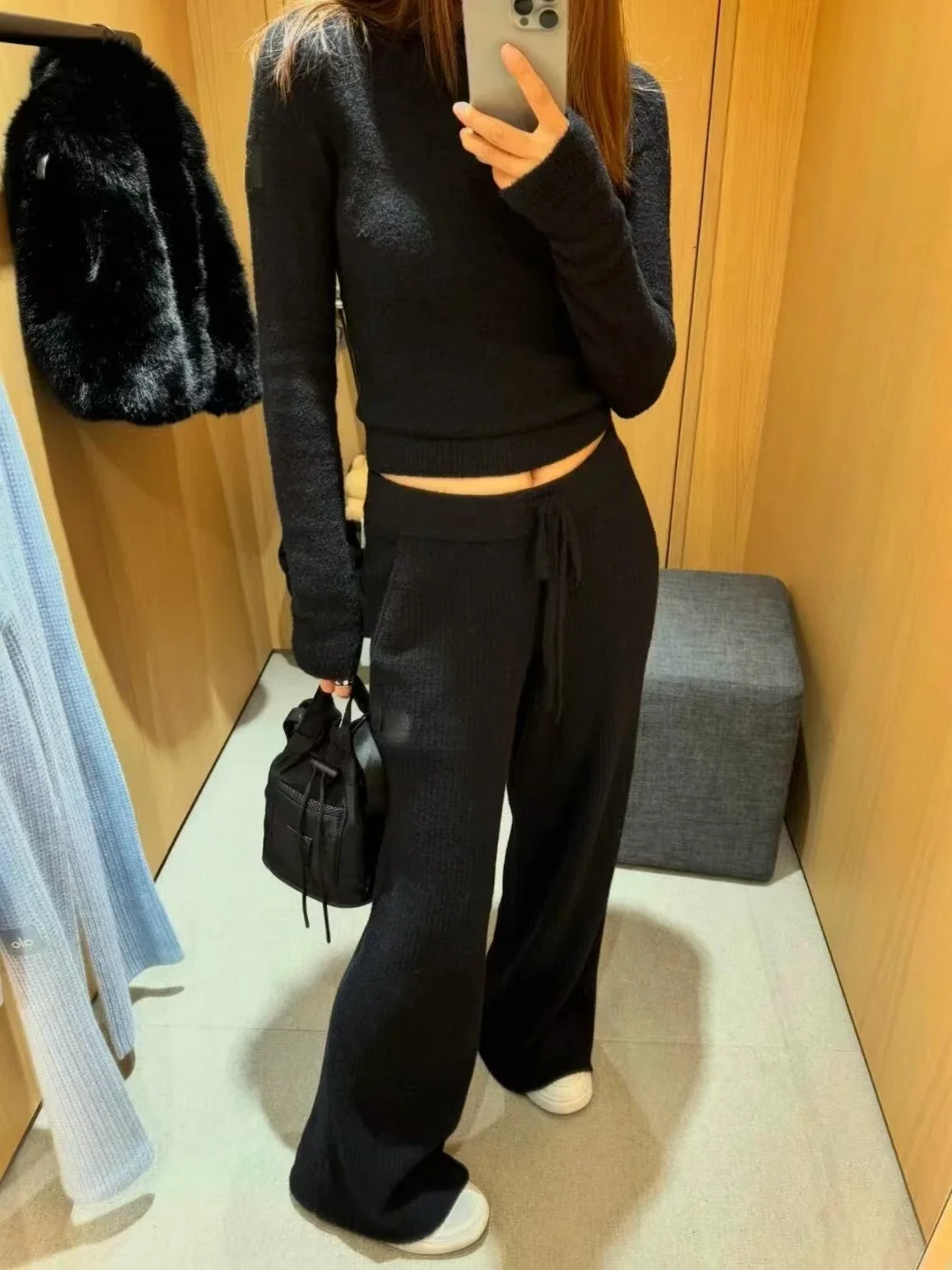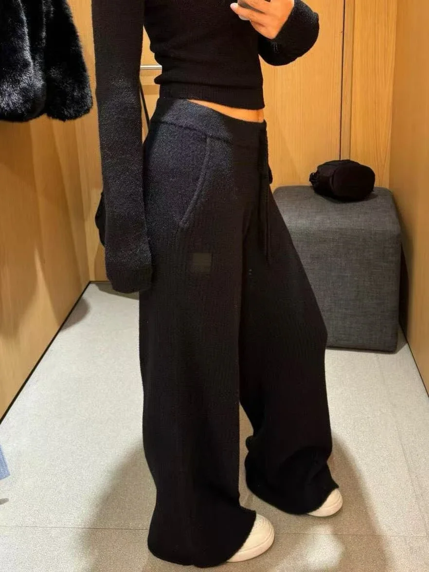 • product name: Women Knit Wide Leg Pants Casual Straight Trousers Soft Comfortable Hi