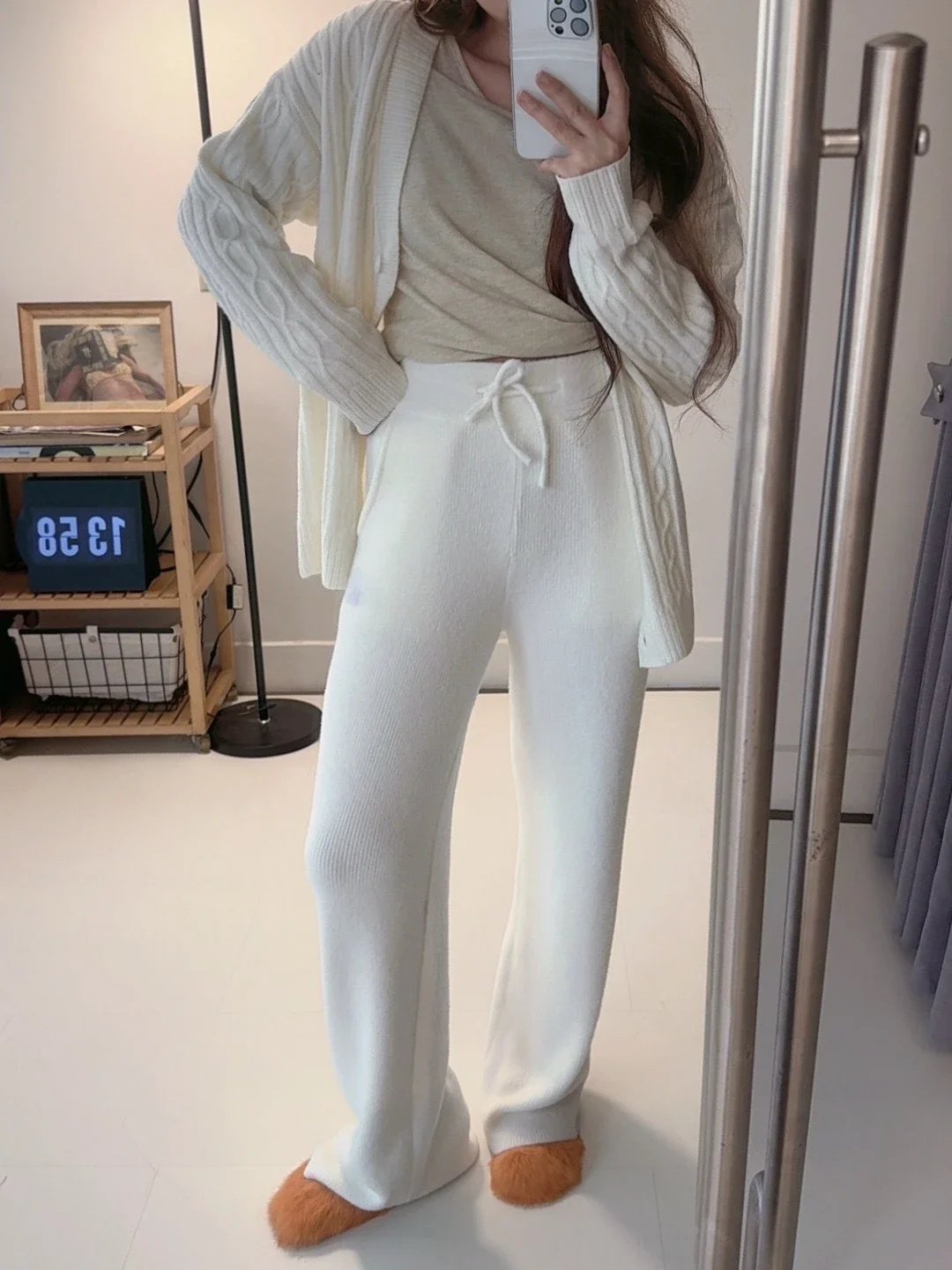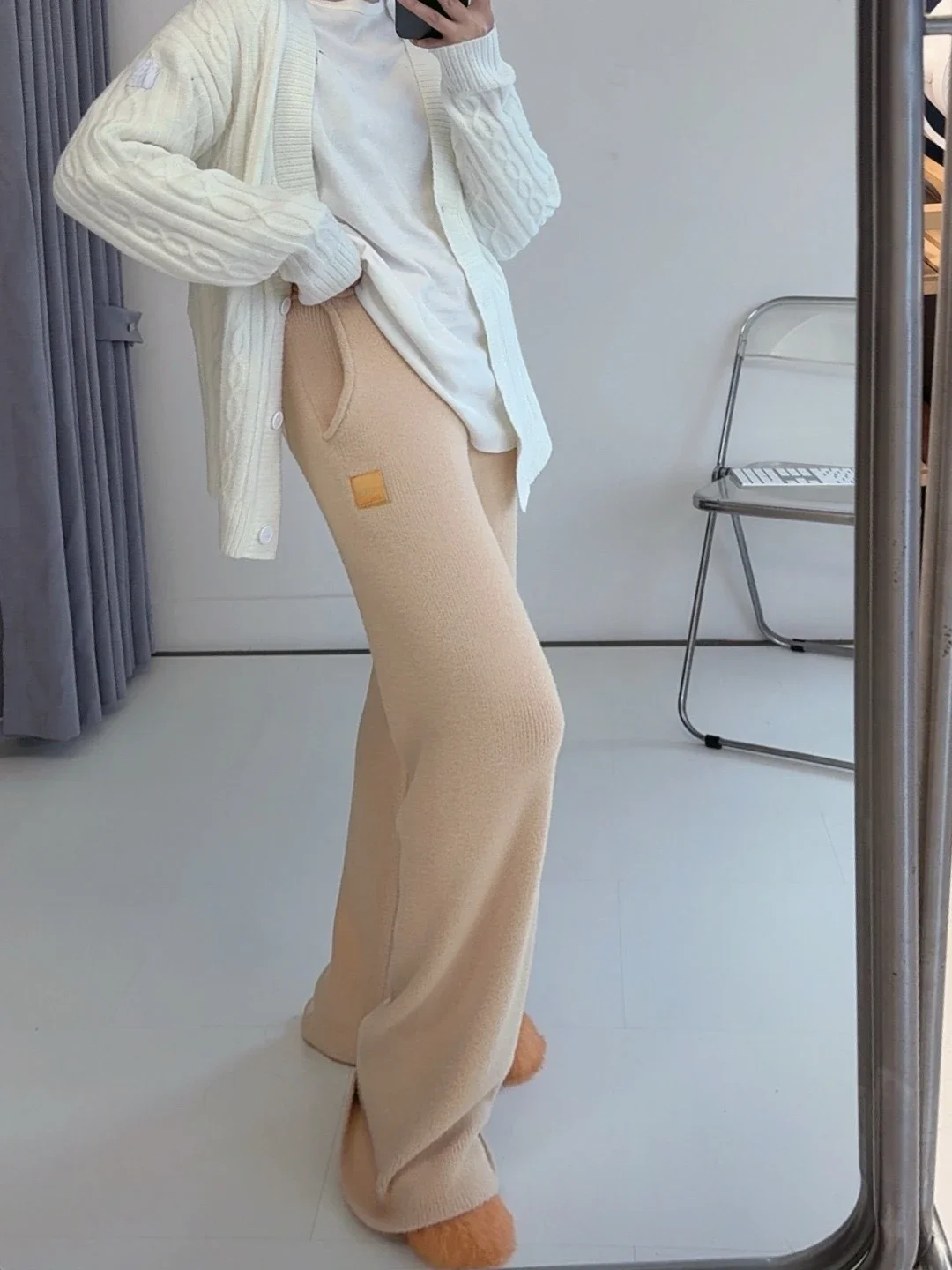 Women Knit Wide Leg Pants Casual Straight Trousers Soft Comfortable High Waist Loose Fit Daily Wear Fashion Bottoms for Autumn